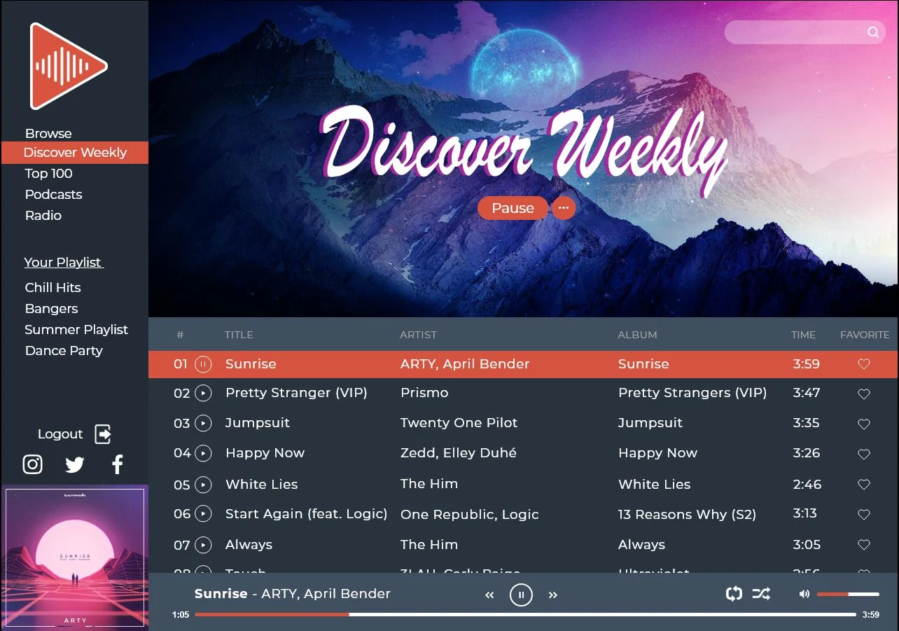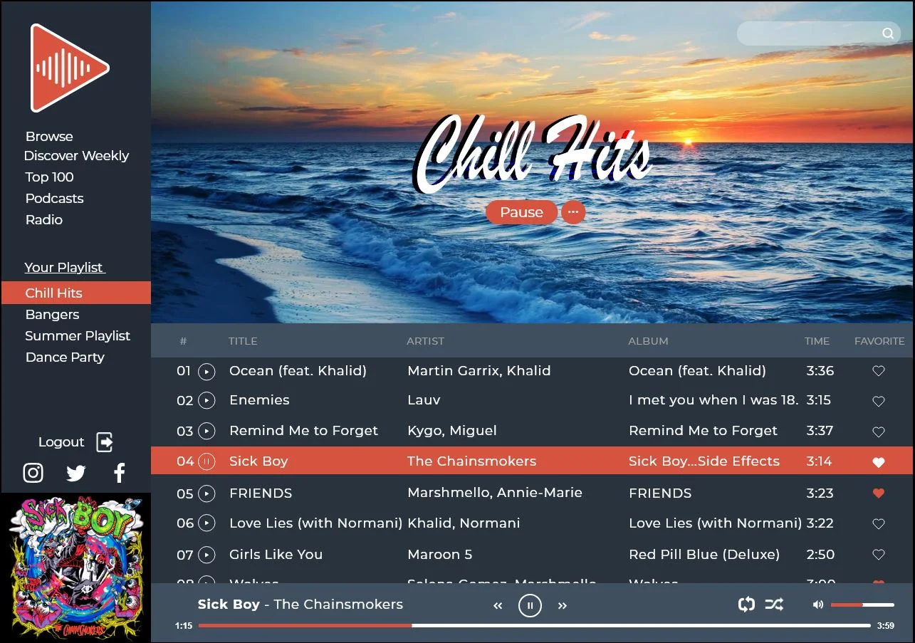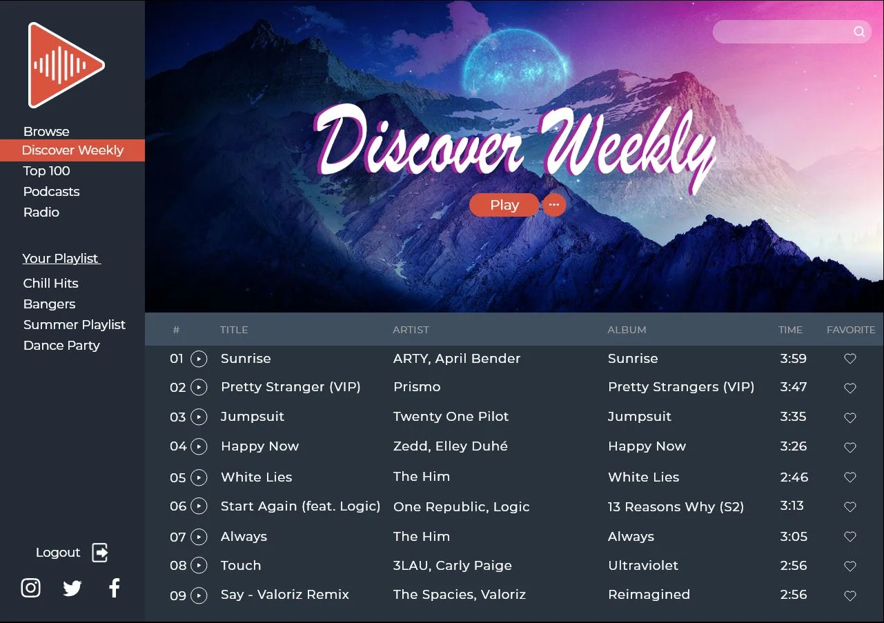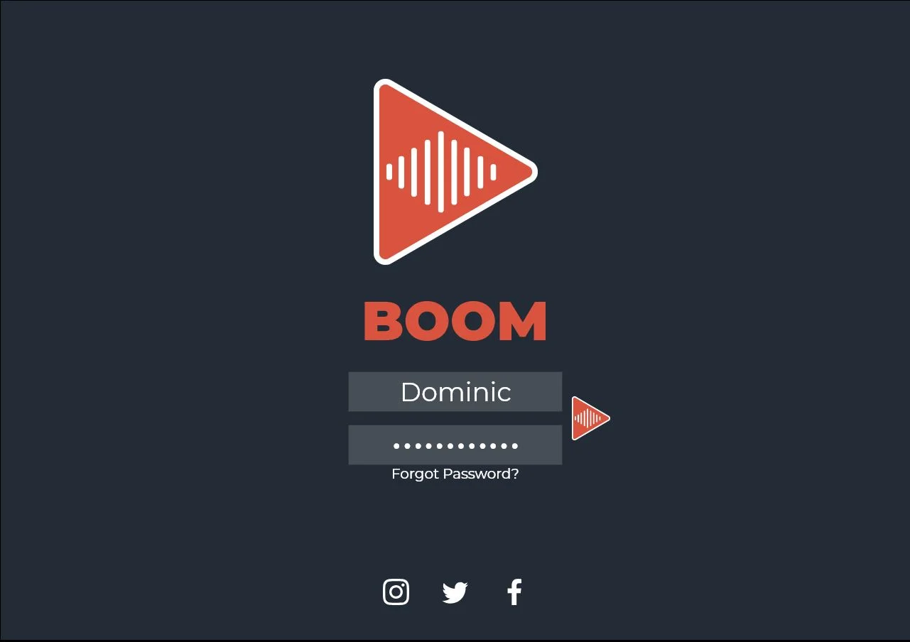 BOOM: A web based music player that I created as a prototype/redesign. I aim for simplicity with colors that stand out from each other.